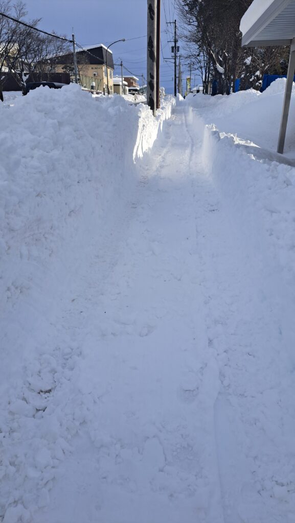 芽室は除雪が早い為、朝には歩道も道路も除雪が入っておりましたが、